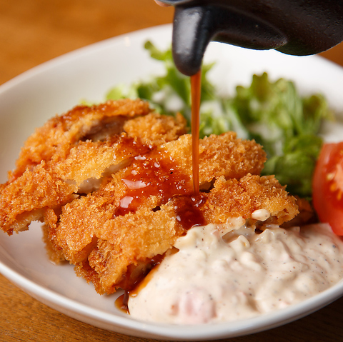 カラッと揚げた鶏肉を甘酢に潜らせ、自家製のタルタルソースをたっぷりとかけた当店おすすめの逸品です!ガブッとかじれば、衣のサクサクした食感の後に、じゅわっと溢れ出す肉汁と酸味の効いたタレが口いっぱいに広がります。卵のコクを感じさせるタルタルソースが絶妙に絡み合い、一度食べたら忘れられない美味しさです◎