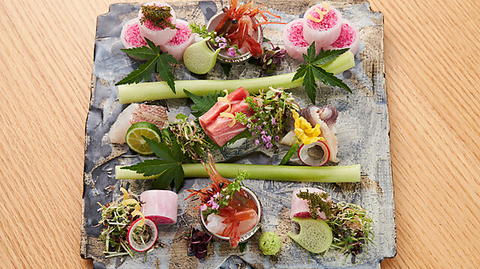 旬の素材を使った繊細な料理の数々は、目に美しい豪華な盛り付けでお客様に提供いたします!驚きの詰まった楽しいひとときをお過ごしください!