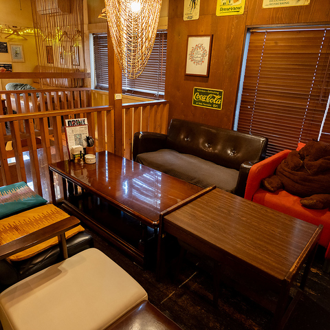 2階はまるで屋根裏部屋◎ゆったりくつろげるソファ席や、半個室をご用意♪アメリカンなテイストの空間で特別な時間を!