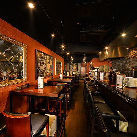 【落ち着きのある隠れ家的スペインバル★】シックで落ち着いた雰囲気のカウンター席。ムード満点のオープンキッチンですので、スタッフとの会話も魅力の一つです♪おひとり様でのご来店はもちろん、お仕事帰りのデートにも◎