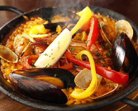 たっぷり魚介の出汁とサフランで炊き上げたパエリアのド定番!『地中海パエリア』から、季節限定のパエリアまで。サイズも3~4名様用の通常サイズ~1~2名様用のハーフサイズまでご用意しております☆