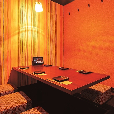 【デート・女子会にも】店内は和モダンでくつろげる空間。落ち着いた雰囲気の個室でゆったりとお過ごし頂けます。デートや記念日、接待などプライベートな飲み会にご利用ください。疲れた足を伸ばしながらお食事をお愉しみいただけます。