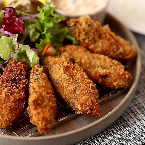噛むほどに広がる 海の旨み. 「 生食用牡蠣 」で毎日手作り. 素材も火入れも、 一切の妥協なく仕上げました! (ライスまたはバケット付き) Ostrea’s dedicated, uncompromising oyster fry. Crispy, light, and bursting with the savory flavor of daily-made, raw-consumption oysters. (with Rice or Baguette)