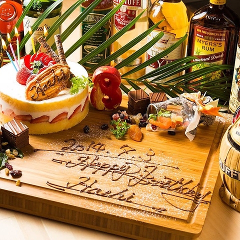 有料にてアニバーサリープレートやホールケーキのご用意可能。サプライズ演出もおまかせください♪