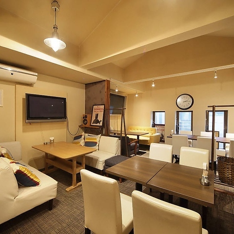 【2階テーブル席:~48名様まで】スポーツ観戦や団らんも◎ゆったり過ごせる上質空間。2階テーブル席は、スポーツ観戦が楽しめるTVを完備。女子会や飲み会、打ち上げなど、さまざまなご宴会にぴったりの空間です。ゆったりくつろげるソファー席もご用意。お一人様330円。コース利用時はチャージ料がかかりません