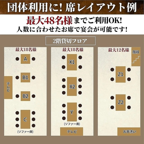 こだわりの逸品料理とHACHI自慢のジューシーなリブロースステーキを楽しめる特別なコースを2時間飲み放題付でご用意しております。2階は37名様以上でフロア貸切可能。13~18名様でご利用いただける半個室もあり、宴会や食事会など幅広くご利用いただけます。特別な時間をぜひ当店でお楽しみください。