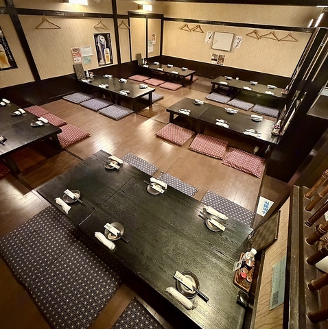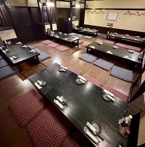 《宴会は最大40名様で可能》広々としたお座敷は、あたたかな照明で落ち着いた雰囲気。足を伸ばしてゆったりくつろぎながらお食事をお楽しみいただけます。スペースに余裕があるため、お子様連れやご家族でのお食事にもオススメ!団体様や大人数でのご宴会も承ります。同窓会・忘年会・新年会といったお集まりにもイチオシ♪