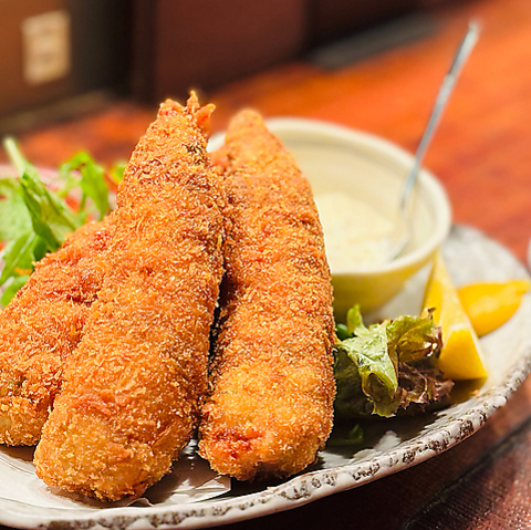 天然海老に岩中豚とシソを巻いた特大海老フライ。海老と豚肉がよく合います。