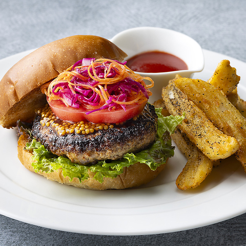 埼玉県産小麦を使用したふっくら香ばしいバンズに、埼玉県産の牛と豚の合挽肉で仕上げたジューシーなパテ。そこに旬の野菜をたっぷりサンドし、仕上げに甘さとコクが絶妙な特製ハニーマスタードソースをプラス。素材ひとつひとつにこだわり、埼玉のおいしさをぎゅっと詰め込みましたサイドにはほくほく食感がたまらないポテトを添えて、満足度抜群!