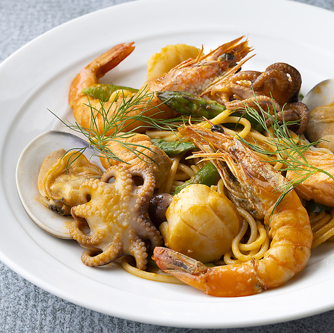 魚介をたっぷりと使い、濃厚な旨みが凝縮されたアメリケーヌソースをあわせました。甲殻類の風味が溶け込んだ深みのある味わいに仕上げのフレッシュクリームがまろやかさをプラス。海の香りとコクが広がる贅沢な一皿をご堪能ください