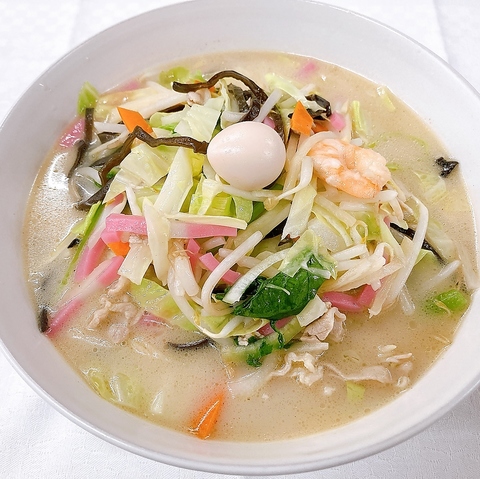 肌寒い日にあったかチャンポン麺はいかがですか?豚肉・海老・うずら卵・イカ・かまぼこ等色々な野菜は入った具沢山なチャンポン麺です。