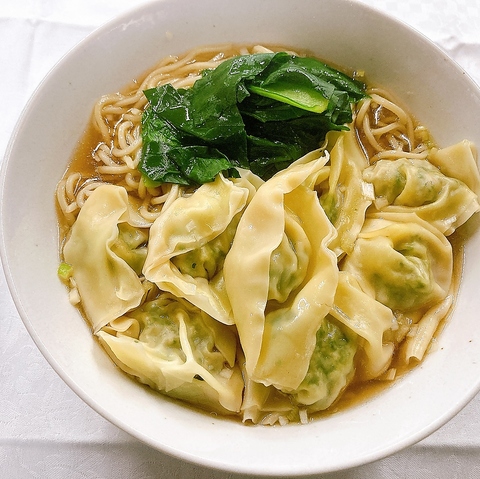 醤油味のスープ麺にワンタンを6個トッピング。滑らかな食感が醤油味のスープに良く合います。