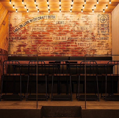 温かみのあるレンガ造りの壁はまるで海外のBARのような雰囲気!店内では世界のbrewery映像が楽しめます♪女子会は勿論、誕生日や記念日、ランチでもお使いいただけるお洒落な店内です。お肉や魚などを使った当店自慢の料理はお酒との相性も抜群♪自家製craft beerを片手に楽しい時間をお過ごしください★