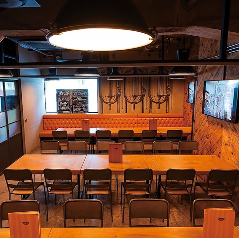 自家製クラフトビールが飲めるブルワリー!開放感のあるフロアは最大100名様程のパーティーが可能。100インチの大型プロジェクタースクリーンやマイク、音響を完備しているので、歓送迎会や結婚式二次会等各種パーティーから、オフ会、スポーツ観戦等にもご利用いただけます。スポーツバーやダイニングバーとしても◎