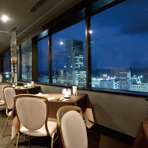お昼は日差しの差し込む明るい店内で、最上階からの景色をゆったりと眺められる落ち着いた空間です。デートやお友達・家族でのお食事に最適。貸切もお問い合わせ下さい。