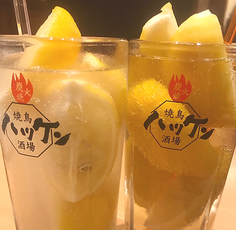 ハッケン特製ドリンクには、氷の変わりに凍らせたレモンがギッシリ詰まった「最強レモンサワー」と「最強レモンハイボール」。仕事終わりの疲れた体に沁み入る1杯です。