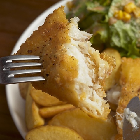 肉厚で大きめのフィッシュとHUB特製タルタルソース!本場英国のスタイルを体現した最上の一皿です
