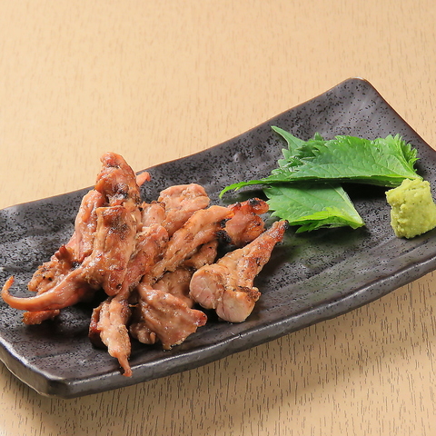 当店一番人気の親鳥のたたき!しっかりした歯応えと旨味が特徴です。たまり醤油と薬味でお召し上がりください。