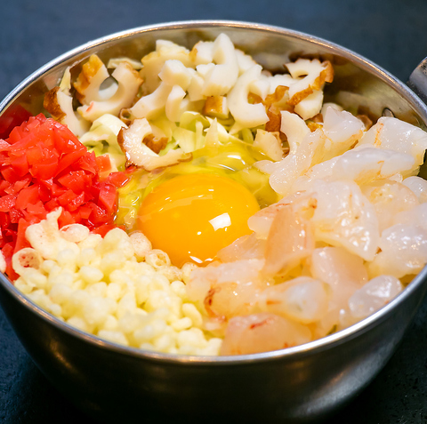粉・ソース・だしに至るまで、すべて関西から取り寄せた本格素材を使用。具材も厳選し、こだわり抜いた一枚を丁寧に焼き上げます。ふわっと香ばしく焼き上げた生地に、海鮮やお肉の旨みがぎっしり詰まった贅沢なミックス玉は、本場大阪の味わいです。