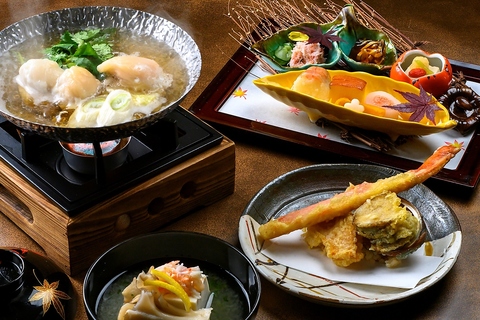 旬の食材を使用したおすすめの季節会席です。焼物、揚物、小鍋など全8品です。(イメージ写真)