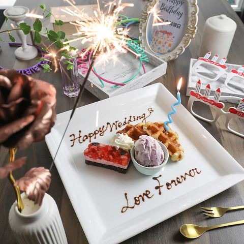 誕生日・記念日に◎メッセージ付きデザートプレートご用意可能!記念日コースはデザプレ+2H[飲放]5000円