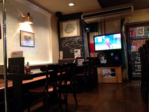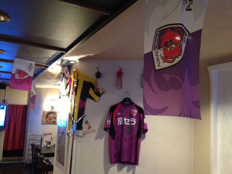 もちろんカウンターからもモニター観れますお一人さまでも、お気軽に京都サンガ、SAMURAI BLUEetc応援できます!
