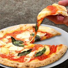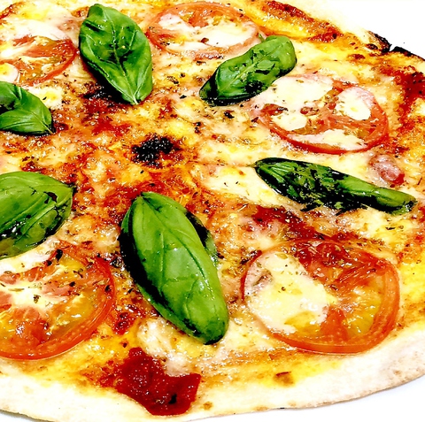 PIZZAは全長約30cm トマトとモッツァレラチーズとバジルのビザ。その名の通りまさにPIZZAの女王です。masは薄い生地のローマスタイルPIZZAです☆