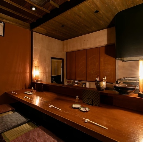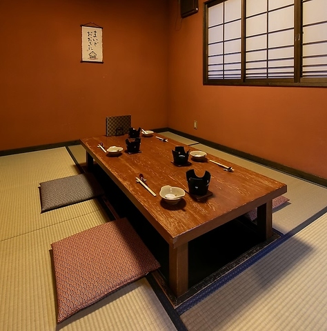 温かな照明と木のぬくもりを感じるお座敷は、ゆったりと座れる掘りごたつ。様々なシチュエーションで使えます。