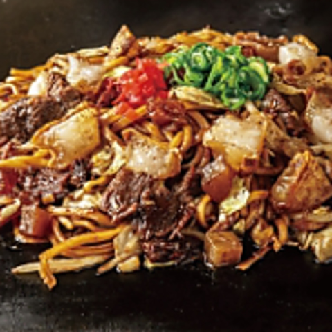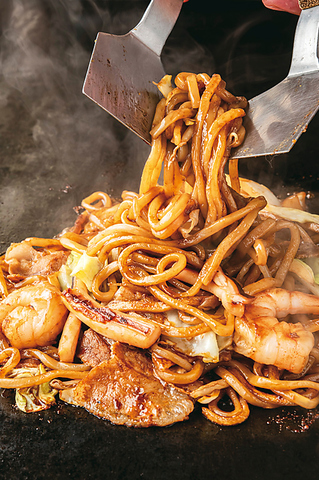 独自開発の極太麺で味わう鉄板焼きそば