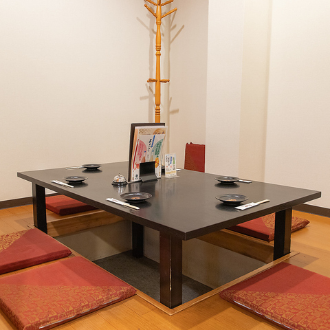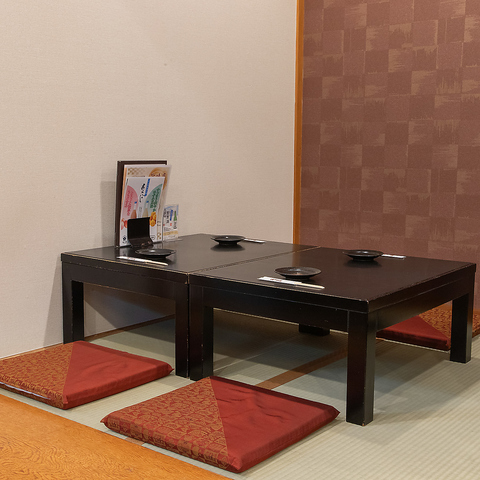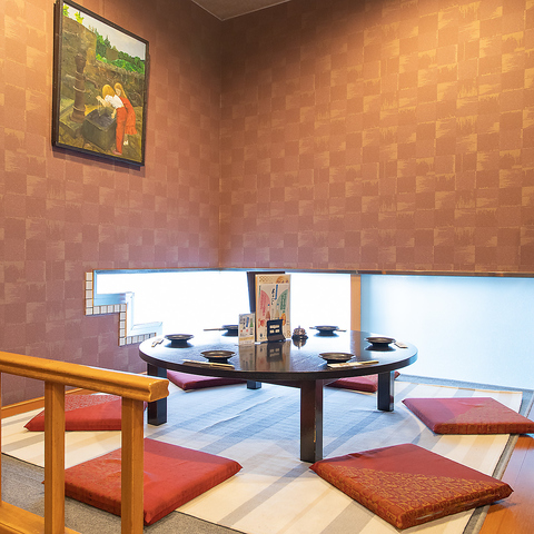 足を伸ばして寛げる、和の温もりに包まれた掘りごたつ座敷。畳の風合いとやわらかな照明が心を落ち着かせる掘りごたつのお座敷。ゆったりと座れるため、長時間のご利用でも快適にお過ごしいただけます。ご家族でのお食事やご友人との集まり、会社のご宴会にも最適。料理とともに、くつろぎのひとときをお楽しみください。