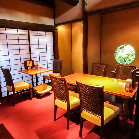 【和の趣あふれる、癒しのくつろぎ空間】店内は木のぬくもりや格子、やさしい照明が織りなす和の落ち着きある雰囲気。女子会でのんびり語らう時間にも、旅の途中にひと息つきたい方にもぴったりです。あたたかみのある空間で、心ほどけるひとときをお楽しみください。