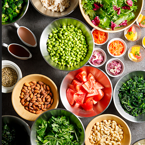 タニタの体組成計で今の自分のカラダを知り、体にやさしい食材を組み合わせて作るあなただけのパーソナルサラダ。選べるメインディッシュとともに、心も体も整うランチタイムをー。