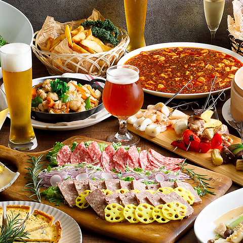 ビアフェスタは、洋中のブッフェが食べ放題!オープンキッチンの豪快に焼き上げた鉄板料理は、お好きなだけ♪お料理は、お好みのお酒をお選びいただけます。ご来店お待ちしております。