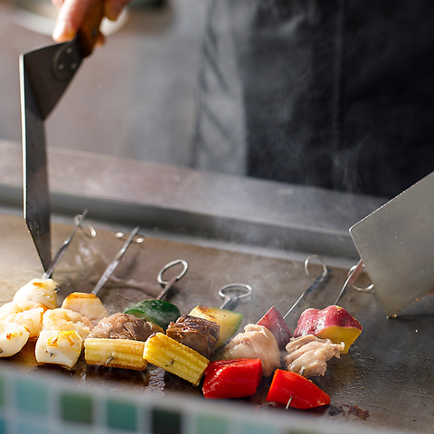 ■鉄板焼きは、目の前で豪快に焼き上げます!調理工程は、ライブ感を間近で楽しめる!大きな鉄板焼きは低温調理でじっくりと焼き上げた自慢の一品!一度食べたらヤミツキになること間違いなし!お酒との相性も抜群の当店のおススメメニューは必見です!■4名様~のご予約.。ご希望のお客様はお問い合わせください。