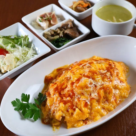 Barでありながらランチを楽しめる!「日本一こだわり卵」を使用したオムライスは当店人気メニュー♪ふわふわとろとろのタマゴと特製ソースが相性抜群!口の中でとろけます♪その他、豊富なメニューで皆様をお待ちしております!ドリンクとデザート付きですが、お急ぎの方のために料理のみのオーダーもできます。