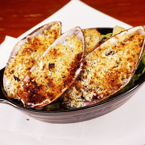 約17年前、名店“トレンタ”のマスターが手がけた特別レシピ。旨みあふれるムール貝に、香ばしくサクサク食感の特製衣をまとわせたオーブン焼きは、女性人気も高い自慢の一皿です。今も愛され続ける、JJ CALL’Nの定番メニュー。