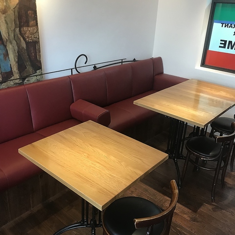 【広々としたテーブル席】アーティスティックな絵画がお洒落な雰囲気を醸し出している店内。真っ赤なソファー席でゆったりとしたお時間をお過ごしいただけます♪人数に応じてお席をご用意いたしますので、御祝い事や女子会にもピッタリ◎時間を忘れて楽しいひと時をお過ごし下さい!!