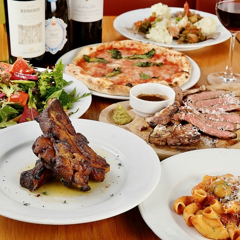 日常のお食事やご宴会にぴったり!お酒にピッタリな前菜、本格自家製ナポリピッツァ、鶏の骨付き肉のロースト(ディアボロ風)が付いた贅沢コースや、充実のアラカルトメニュー等、シーンに合わせてお楽しみ頂けます。オーナー厳選の本格シャトー物ワイン、生カールスバーグ、本格カクテルも付いた飲み放題もございます。