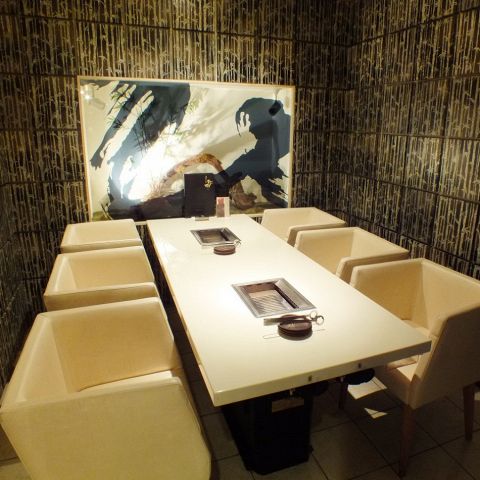 接待や会食、お食事会など大切なお客様とのお食事などにおすすめのVIP個室席です。6名様までご利用いただけます。また、加熱式たばこの喫煙が可能ですので、お煙草を吸われる方も快適にご利用いただけます。ラグジュアリー感のある空間で、当店自慢のお肉を存分にご堪能くださいませ。