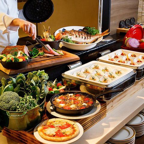 ライブキッチンでシェフが丹精込めた出来たての料理から、食後はチーフパティシエが作るデザートをご堪能ください。