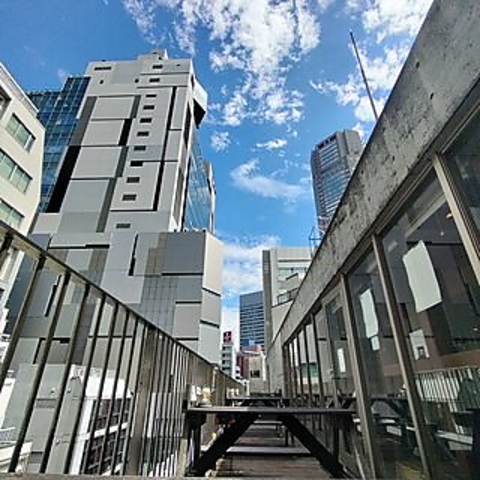 ビル5Fからの眺めが素敵なテラス席。ビール片手に開放的な気分を楽しめる人気のお席です。