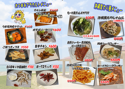 リピーターの皆様に喜んで頂くために、沖縄の定番料理に加え、当店のオリジナル料理(沖縄料理以外)もあります。沖縄を満喫したい方はもちろん、そうでない方にも満足して頂けるメニューもご用意しています。ナンバー1の沖縄料理店ではなく、目指しているのはオンリー1の沖縄居酒屋!!