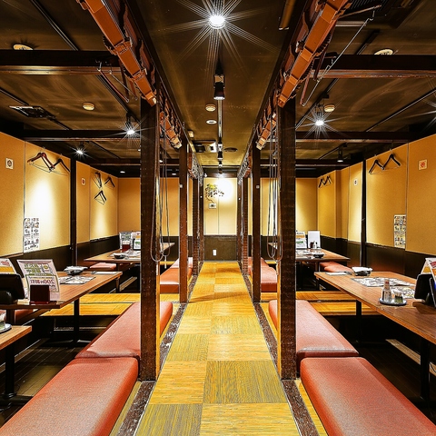 大人数での宴会に最適な居酒屋として、広々としたテーブル席をご用意。飲み放題付きコースも充実しており、個室の利用も可能です。設備や環境が整っているので、幹事様が安心してご予約いただけます。
