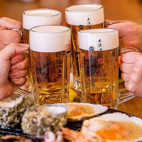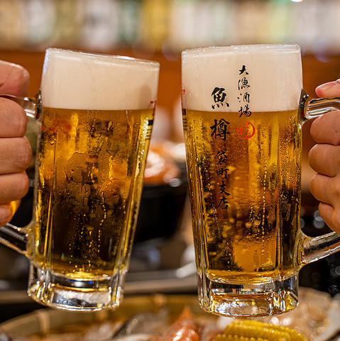 飲み放題メニューは定番をしっかりとご用意しております。乾杯にかかせない生ビールや、お魚に合う焼酎・日本酒など、どんなお客様にもご満足いただけるラインナップです。気軽に楽しみたい方は、単品飲み放題もご用意しておりますので、お申し付けください◎