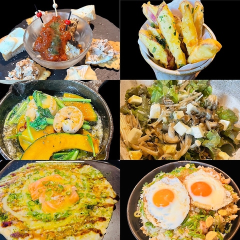 ポポジー定番メニューもんじゃ焼きの新作も続々登場サーモンのガリバタもんじゃやシーフードトマトもんじゃなどいろんな味をご用意してますハーフ&ハーフも出来ますのでいろんな味を試しちゃてください