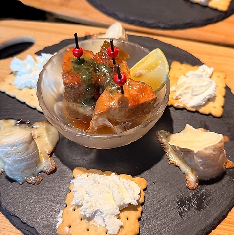 この時期に食べたくなる季節の新作メニューもいろいろあります 気まぐれスモーク盛り合わせはサーモンのスモークサルサソース仕立て、悪魔のハニーさつまいもスティック、きのことクリームチーズのサラダ、海老とかぼちゃのアヒージョなどなど