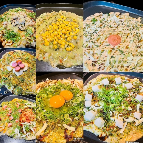 明太子チーズ、おもちーず、塩バタコーン、ねぎ玉、キムチーズ、ピリ辛、ジャーマンカレー、トマ玉、梅ツナマヨ、あさりガリバタからお選びください 2~3人前