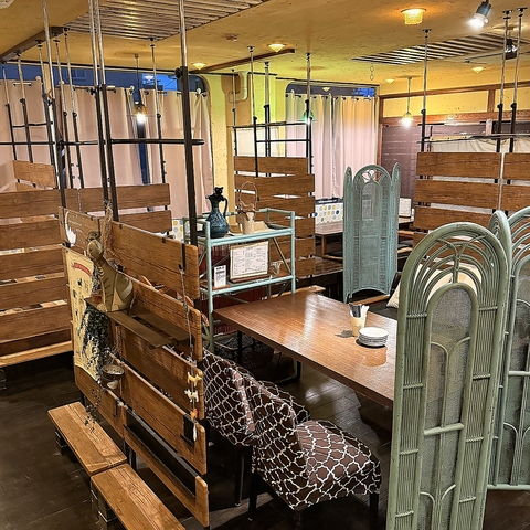 ゆったり広めにお席の間隔をとりパーティションなどで仕切りあります