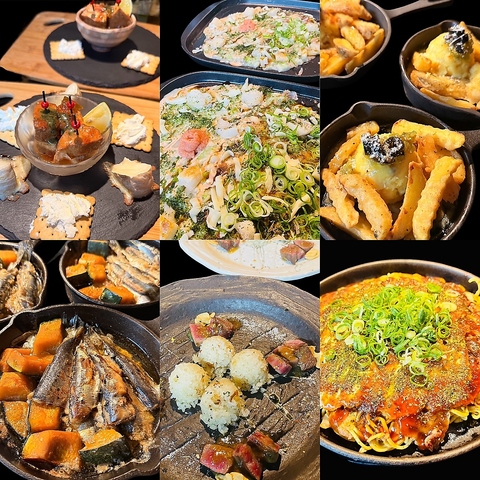 当日人気のもんじゃ焼き付きコースです 他にも鉄板焼きメニューやサラダ、アヒージョなどついてますよ