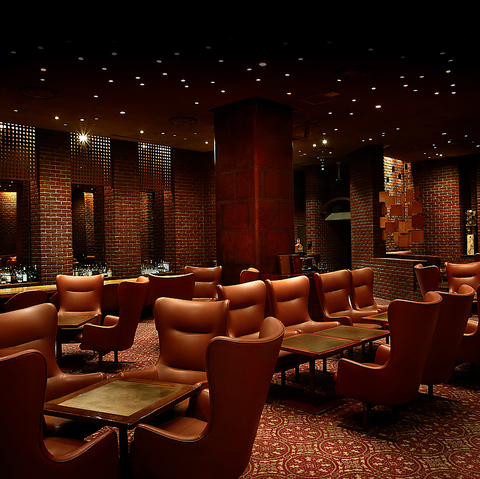 店内の重厚かつあたたかな雰囲気を作り出しているのは、壁面に積み上げられた赤煉瓦。「微笑む煉瓦」とも称されるその美しいたたずまいは、メインバーとしての印象を決定づけている。
